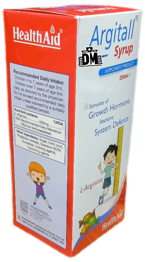 حاوی ۵۰۰ میلیگرم ال آرژنین در هر ۶ میلیلیتر از شربت نحوه مصرف در کودکان ۴ تا ۷ سال هر روز ۳ میلیلیتر بالای ۷ سال روزی ۶ میلیلیتر